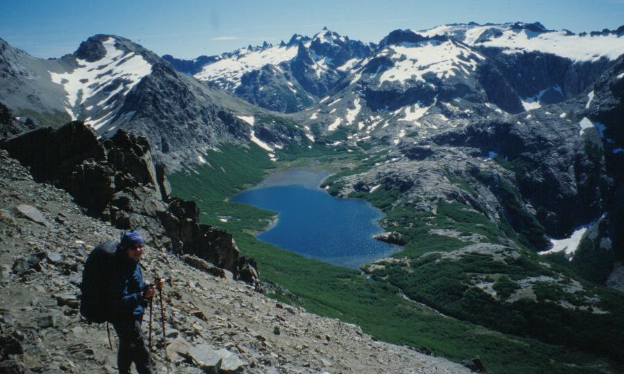 An diesem Tag ging es nochmals auf einen Sattel herauf. Oben ist der der Blick auf die Laguna Jakob frei. Das Refugio San Martin muß sich irgendwo in der Nähe der Lagune befinden.
