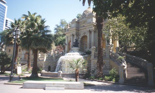 Cerro Santa Lucia Hinter diesem Gebäude befindet sich der Berg Santa Lucia, der seit 1872 als öffentlichen Park gestaltet ist. Von Gipfel aus hat man einen wunderbaren Blick auf die Stadt. An diesem Ort hat im Jahre 1541 Pedro de Valdivia die Stadt Santiago gegründet. |