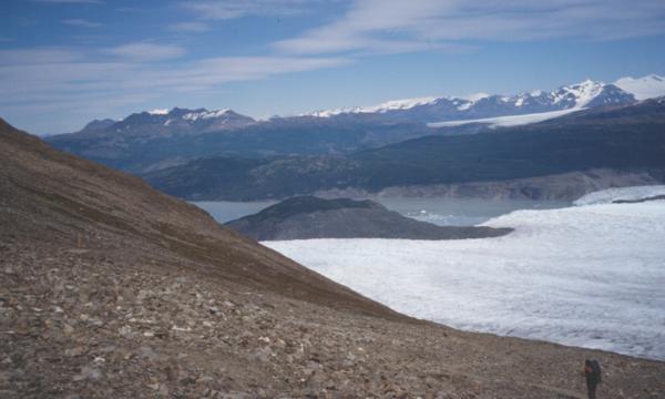 Abstieg vom Paso John Garner mit Blick auf Glaciar und Lago Grey